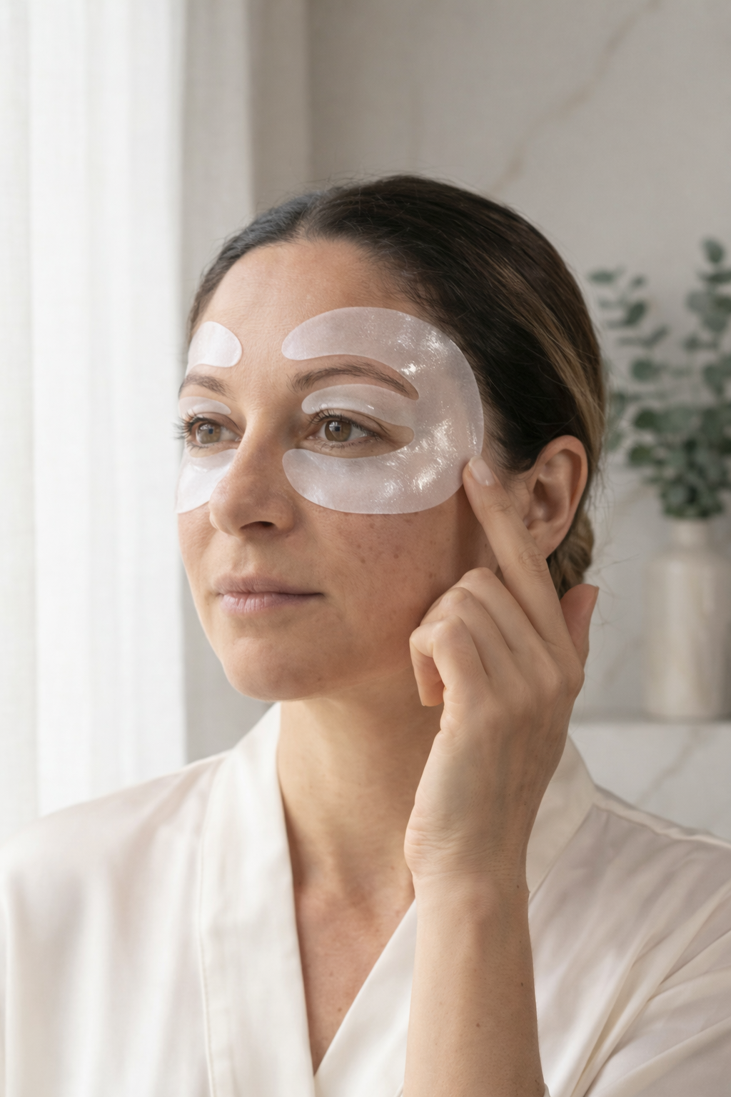 Oui. La texture hydrogel d'HR360 adhère naturellement à la peau sans colle ni fixatif. Il épouse les courbes du contour de l'œil et reste en place pendant toute la durée de la pose — que vous soyez allongée, assise ou en train de prendre votre café du matin. Contrairement aux patchs classiques qui glissent et se décollent, la forme 360° de HR360 est conçue pour s'adapter à la morphologie complète du regard et maintenir un contact parfait avec les 3 zones traitées.